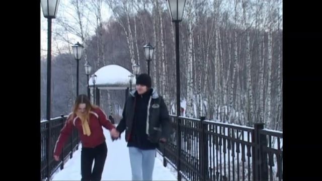 młoda blondynka i jej facet bawią się na dworze w śniegu,rzucają śnieżkami,po powrocie do domu w przedpokoju szybko zrzucają ciuchy i się pieprzą