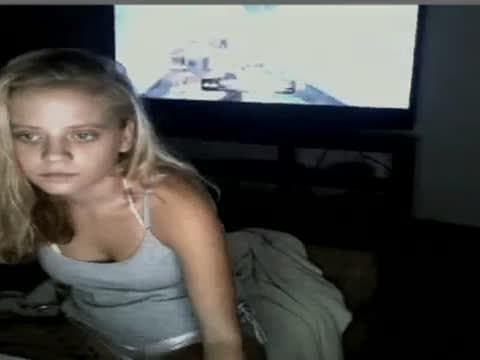 Ta młoda, ładna blondynka lubi się pokazywać wszystkim zupełnie naga - siedzi przed kamerką i chwali swoim młodym, świetnym ciałem, zobacz!