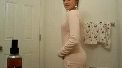 Młoda dziwka rozbiera się i pieści pizdę