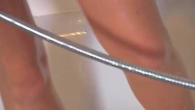 Facet już czeka na żonkę w łóżku.Blondynka masturbuje się pod prysznicem i potem szybko wskakuje mężowi na kutasa. Seks zakończony wytryskiem na twarz