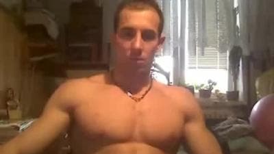 Młody atrakcyjny facet ma muskularne ciało którym kocha się chwalić w scenie masturbacji przed kamerą, która kończy się wytryskiem, nie przegap!