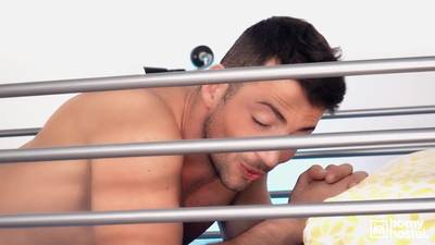 Piętrowe łóżko w hostelu ma dziurę, przez którą facet wystawił kutasa dla Lady Dee, azjatyckiej dziwki z dołu. Zobacz jak mu go wali stopami i obciąga!