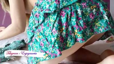 Słodka blondyneczka masturbuje się do mokrej pizdy