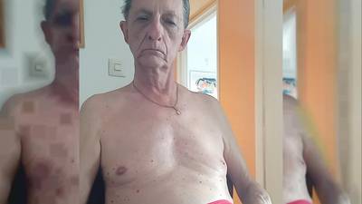 Stary facet uwielbia sie pokazywać przed kamerą w sprośnych scenach masturbacji. Tym razem zakłada na dużego chuja metalowe ringi, zobacz jeśli lubisz!