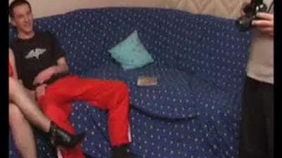 Blondyna z dużymi cycami, puszysta amatorka chętnie korzysta z okazji do pierdolenia się z dwoma facetami przed kamerą! Po fellatio pokaże, że sporo umie!