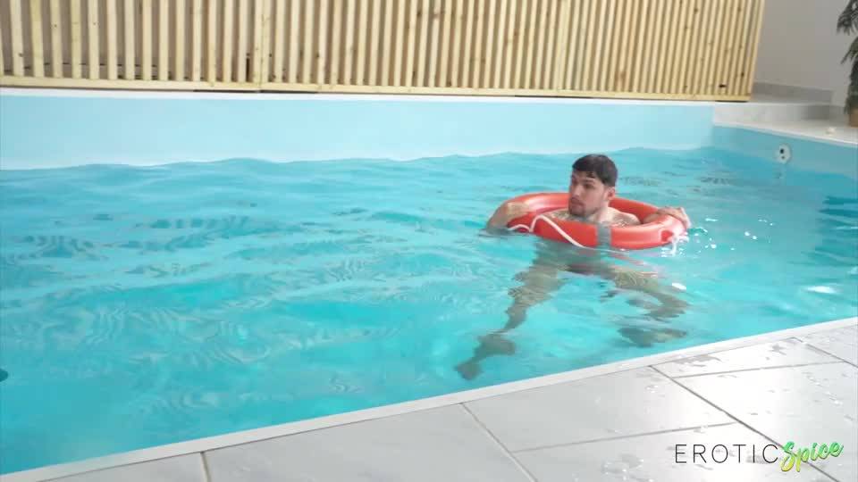 Sheila Ortega, latynoska ratowniczka na basenie ma wielkie cyce. Kristof Cale, któremu uratowała życie podziękuje jej i po fellatio zerżnie namiętnie!