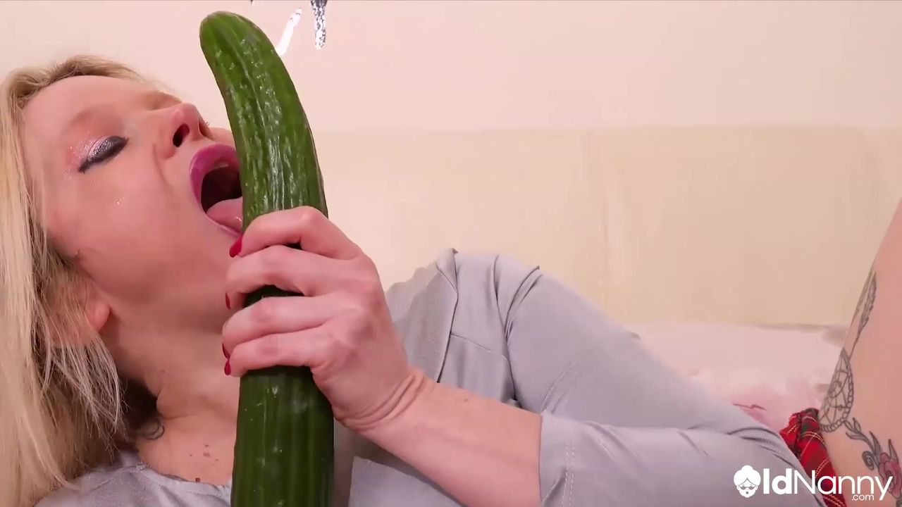 Wytatuowana dojrzała blondynka z wielkimi cycami, ładna Tina Tolley uwielbia się masturbować i nie ważne czy zrobi to dużym dildo czy wielkim ogórkiem, gorąca!
