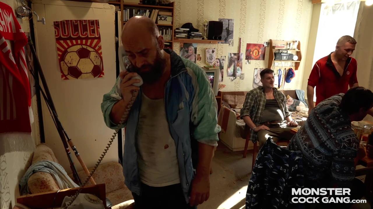 Męskie popołudnie przy wódce i grze w karty, plotkach o kobietach, oglądanie porno. Jeden z nich podzieli się własną żoną a reszta wypierdoli ją na gangbang!