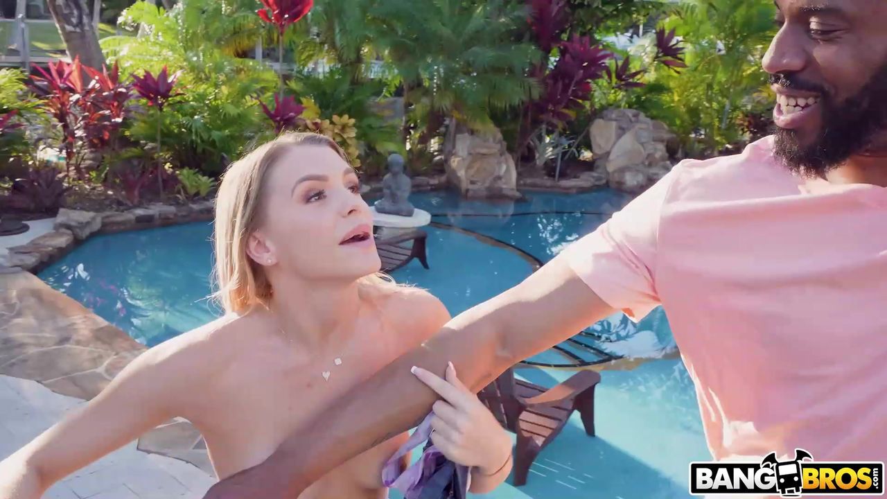 Blondynka Evelyn Payne w końcu ma trochę czasu dla siebie, więc siada przy basenie, zdejmuje szorty i zaczyna cieszyć się swoim ulubionym różowym dildo