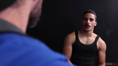 Umięśniony ojczym Rico Raunch klęka i ssie swojego pasierba