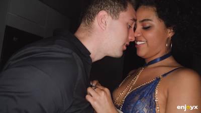 Czarna cycata Selva rżnie swoją owłosioną cipkę na stojąco doggystyle