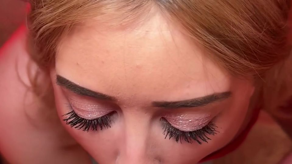 Blondynka na kolanach ssie tego kutasa w POV, jęcząc, gdy zostaje penetrowana w dupę, spuszczają się do środka, a ona błaga o więcej, cała brudna i napalona.