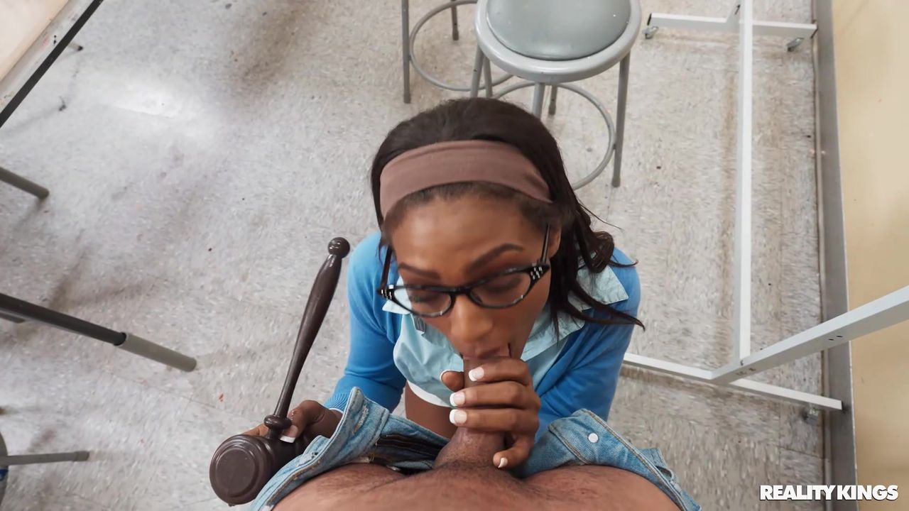 Czarna laska Rhae Woods i student Mike Ox pieprzą się w radzie