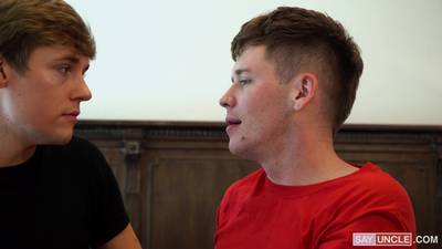 Po uścisku i szybkim pocałunku w policzek, ci pasierbowie czują napięcie seksualne! Zaczynają się całować, szybko się rozbierają, co prowadzi do obciągania kutasów