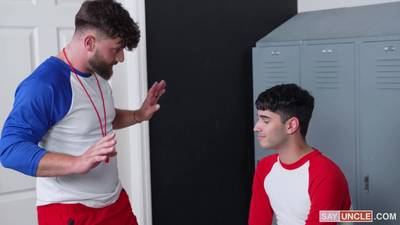Uczeń trenera odchodzi i aby dać mu wspomnienie, zdejmuje bieliznę, aby mu dać! Ale ten napalony uczeń nie może przestać gapić się na jego kutasa!