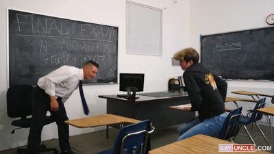 Ten perwersyjny nauczyciel obiecał swojemu uczniowi, że da mu dobre oceny tylko wtedy, gdy będzie mu obciągał i ostro go ujeżdżał.