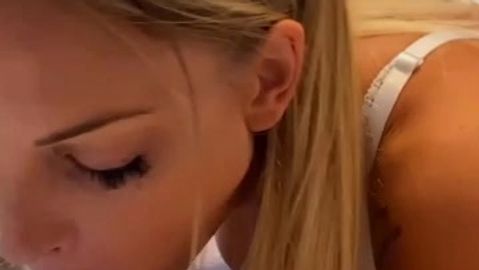 Piękna blondynka przyjeżdża ubrana, ale kilka minut później zdejmuje wszystko, aby jego penis był twardy, a kiedy będzie gotowy, będzie go ssać