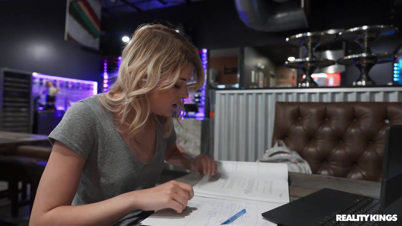 Dez Hansen pokazuje cycki swojemu chłopakowi Alex Jones, podczas gdy on pracuje w pizzerii. Ona dyskretnie ssie jego kutasa, potem idą do łazienki, żeby się pieprzyć!