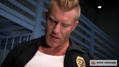 Brian Bonds i Johnny V ubrani w mundury policjantów obciągają sobie wzajemnie duże kutasy i obaj robią to aż do końca. Bardzo podniecająca scena!