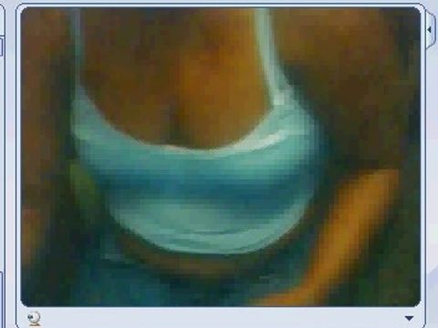 Napalona gruba kobieta siedzi przed kamerką, po drugiej stronie ma faceta, którego chce podniecić swoimi cyckami i właśnie mu je okazuje, zobacz!